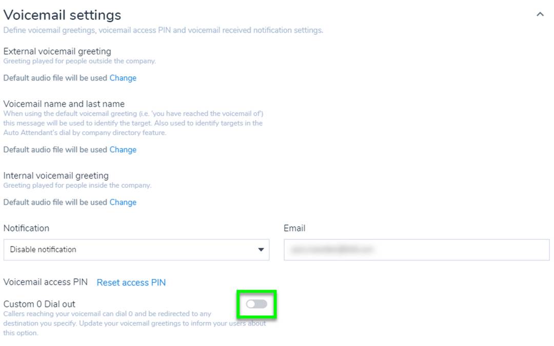 Configure Custom 0 Dial Out for Voicemail in 8x8 Admin Console