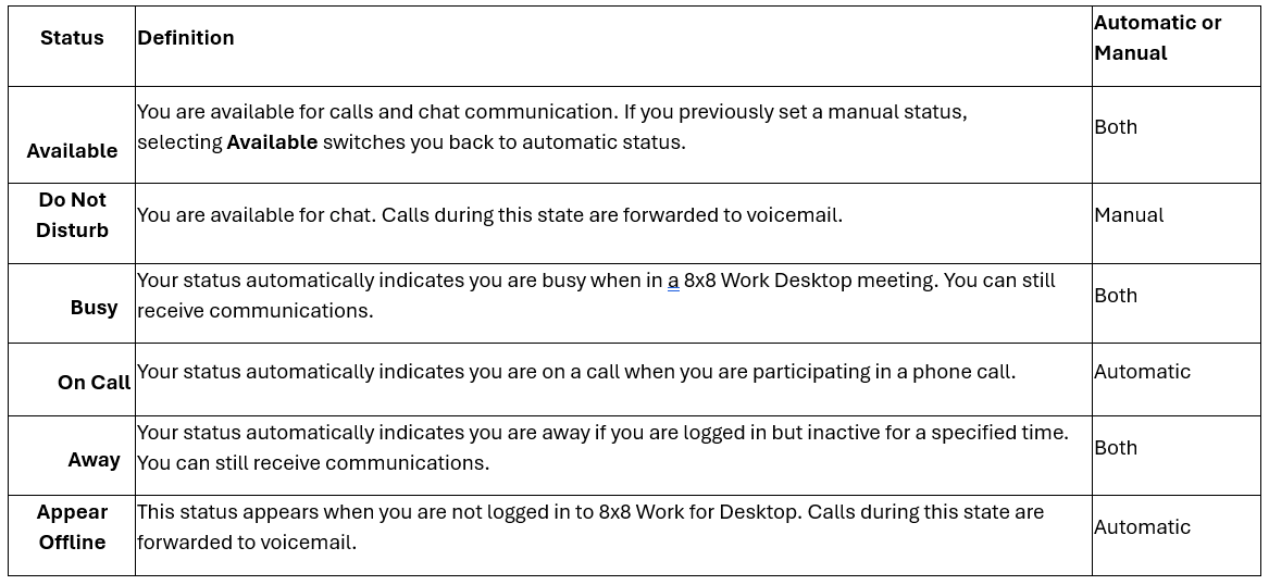 changed automatically by 8x8 Work Desktop, or changed manually by the